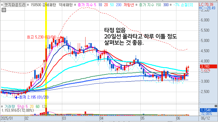 - 20일선을 타면서 상승하는 경우는 아예 타점을 잡을 수 없습니다.